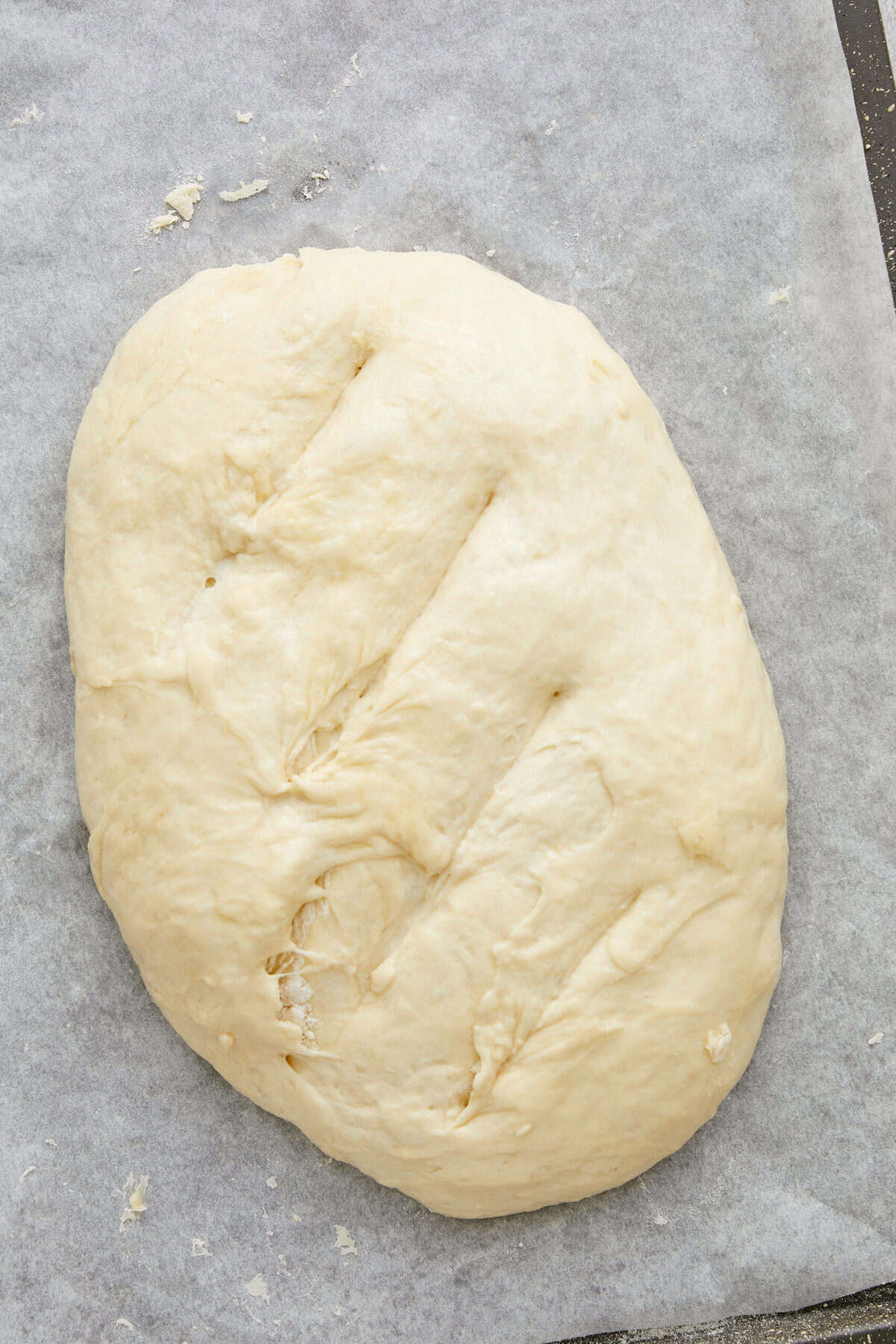Using a sharp knife, make several diagonal slashes across the top of the dough.
