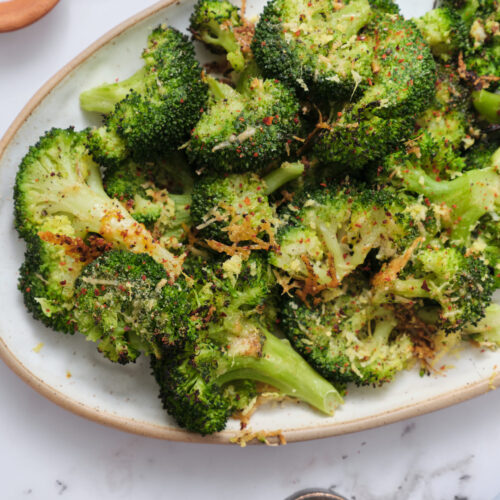I especially like to cook smashed broccoli during the winter holidays as part of a buffet-style spread. Ready for a nourishing Thanksgiving? Dish out your smashed broccoli with Air-Fryer Turkey Breast and Turkey Gravy, plus some Garlic Mashed Potatoes and a tangy Thanksgiving Salad. Otherwise, if you’re smashing some broccoli for the summertime, pair it with Garlic Butter Steak Bites or Easy Homemade Sweet Potato Veggie Burgers.