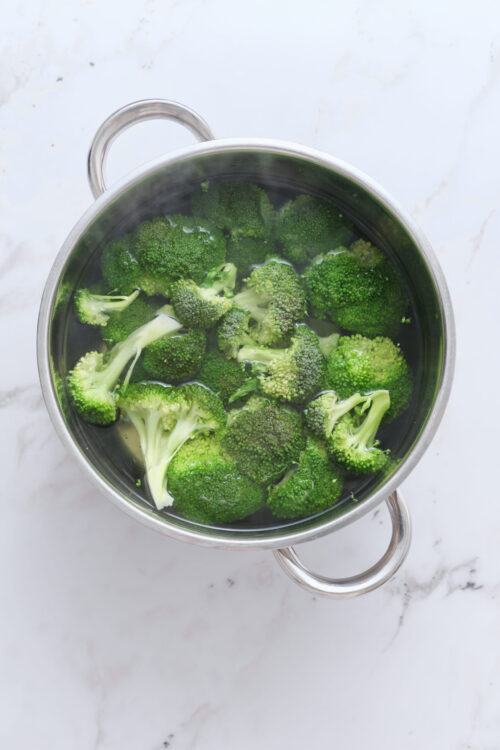 Preheat your oven to 400°F. In a large pot, bring water to a boil with some salt. Add the broccoli florets and cook for 3-4 minutes until they are just tender. Drain the broccoli and let it cool slightly.
