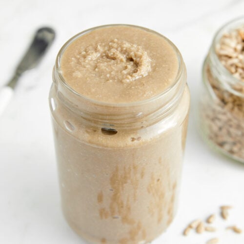 Keep your jar of sunflower seed butter in the pantry for up to 2 weeks or in the fridge for 1-2 months. Please note that storing it in the fridge will make it more solid and cause the oil to separate slightly, so you may have to stir it before serving.