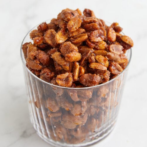Let your honey-roasted peanuts cool to room temperature before transferring them to an airtight container. Keep them in a cool and dry place—like a pantry or cupboard—for up to 1 week. I don’t recommend refrigerating or freezing them because this will ruin their texture.