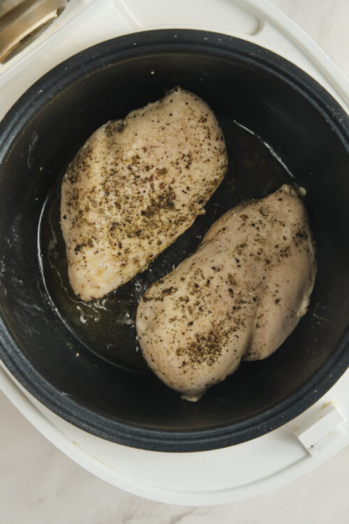 Season the chicken breasts on both sides with salt, pepper, and Italian seasoning. Set the Instant Pot to ‘Sauté’ and add 2 tablespoons of butter along with the olive oil. Once hot, sear the chicken for 2-3 minutes per side until golden, then remove the chicken and set aside.