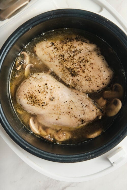 Pour in the chicken broth and marsala wine. Return the chicken to the pot. Secure the lid, set the valve to ‘Sealing,’ and pressure cook on high for 8 minutes.