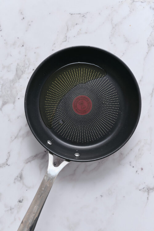 Heat the olive oil in a nonstick pan over medium-high heat until it shimmers.