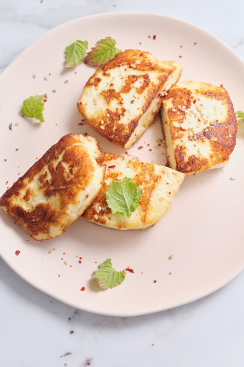 Originally from the island of Cyprus, halloumi has spread far and wide to be fried in our kitchens today, but it’s especially common in Mediterranean cuisine. In those regions, it was traditionally enjoyed as part of a mezze platter alongside breads, dips, and veggies. But feel free to experiment with your fried halloumi until you find your favorite way to serve it. Seasoned with sweet, savory, and even spicy flavors, fried halloumi is an easy snack or protein-rich topper for a salad. No matter how you choose to serve it, this dish is simply delish.