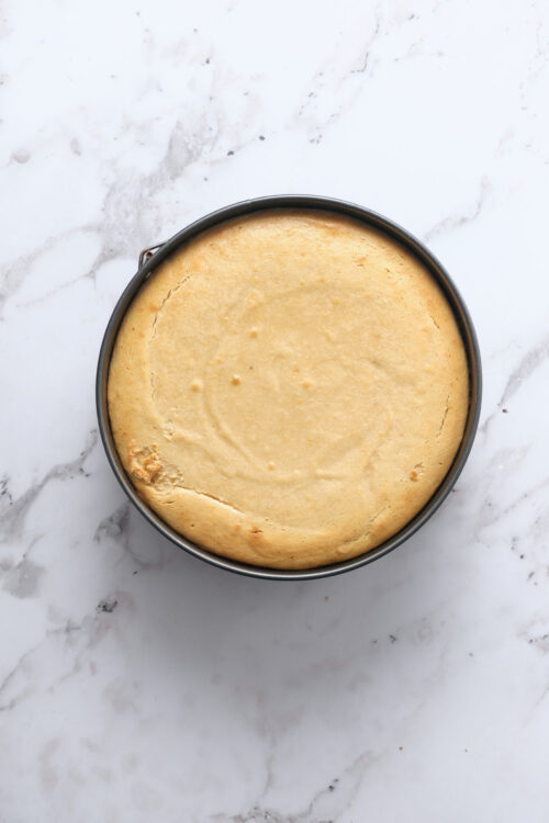 Bake in the preheated oven for 50-60 minutes until the edges are set and the center is slightly jiggly. Remove from the oven and let cool to room temperature, then refrigerate for at least 6 hours (overnight is best) to set the cheesecake.