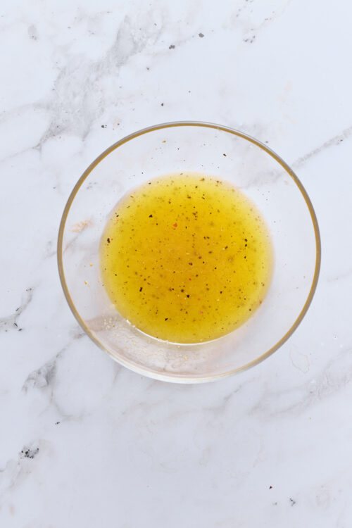 In a small bowl, whisk together the lemon juice, apple cider vinegar, olive oil, honey, salt, and pepper until smooth. Adjust the flavor as needed by adding more lemon juice or honey to achieve your desired taste.